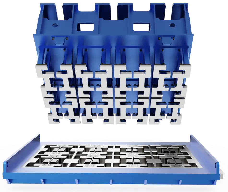قالب های آجرسازی تحت ارتعاش فرکانس بالا، ضربه با فشار بالا و شرایط سایشی قوی برای دوره های طولانی کار می کنند. خواص مواد عامل اصلی تعیین کننده عمر مفید است. Quangong Machinery Co., Ltd. فولاد آلیاژی مقاوم در برابر سایش با استحکام بالا را در ساخت قالب خود انتخاب می کند و طرح های تطبیق مواد هدفمند را بر اساس شرایط عملکرد محصول مختلف انجام می دهد. با بهینه سازی ریزساختار مواد و فرآیندهای عملیات حرارتی، بخش های کلیدی قالب دارای چقرمگی ضربه عالی، مقاومت در برابر خستگی پایدار و مقاومت در برابر سایش بالا هستند. در شرایط تولید مداوم با شدت بالا، قالب همچنان میتواند ابعاد قالبگیری دقیق و لبههای محصول شفاف را حفظ کند، به طور موثر فرکانس تعویض و زمان خرابی را کاهش میدهد و در نتیجه کارایی کلی تولید را بهبود میبخشد. در فرآیند تولید، دقت قالب به طور مستقیم بر کیفیت ظاهر و پایداری انباشته محصولات آجری تأثیر می گذارد. Quangong Machinery Co., Ltd. با تکیه بر مراکز ماشینکاری CNC با دقت بالا و تجهیزات پردازش خودکار، به کنترل دقیق خطاهای ابعادی حفره قالب دست می یابد و اطمینان می دهد که صافی، عمود بودن و ابعاد کلیدی در استانداردهای بالا باقی می مانند. ساختارهای قالب پیچیده دقیقاً در یک قطعه قالبگیری میشوند و به طور موثر از نوسانات کیفیت ناشی از خطاهای مونتاژ جلوگیری میکنند. از طریق روشهای پردازش استاندارد و یک سیستم کنترل کیفیت دقیق، هر قالب ثبات ابعادی محصول و پایداری دستهای را تضمین میکند و آن را به ویژه برای تولید در مقیاس بزرگ آجرهای نفوذپذیر، آجرهای سنگفرش، آجرهای محافظ شیب، و محصولات مختلف آجری با شکل نامنظم سفارشی مناسب میسازد.
