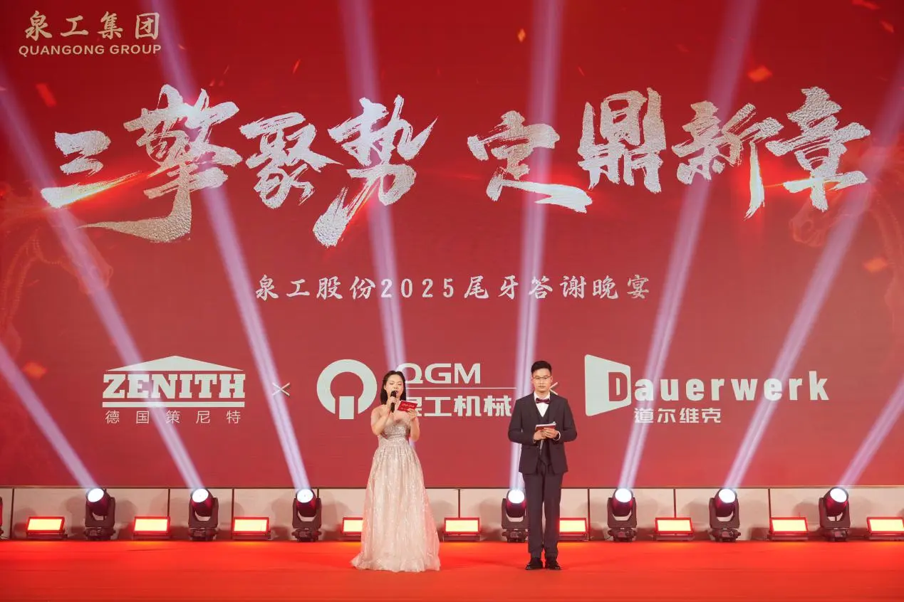 بعدازظهر 3 فوریه،Fujian Quangong Machinery Co., Ltd.مراسم خلاصه و جوایز سالانه 2025 و جشن سال نو خود را در هتل Quanzhou Donghai Honor با موضوع "سه موتور همگرا، تنظیم یک فصل جدید" برگزار کرد. رهبران شرکت، نمایندگان کلیدی مشتریان، همه کارمندان و خانوادههایشان دور هم جمع شدند تا سفر سخت کوشی را مرور کنند، دستاوردهای توسعه را به اشتراک بگذارند، و مشتاقانه منتظر آیندهای روشن باشند.
