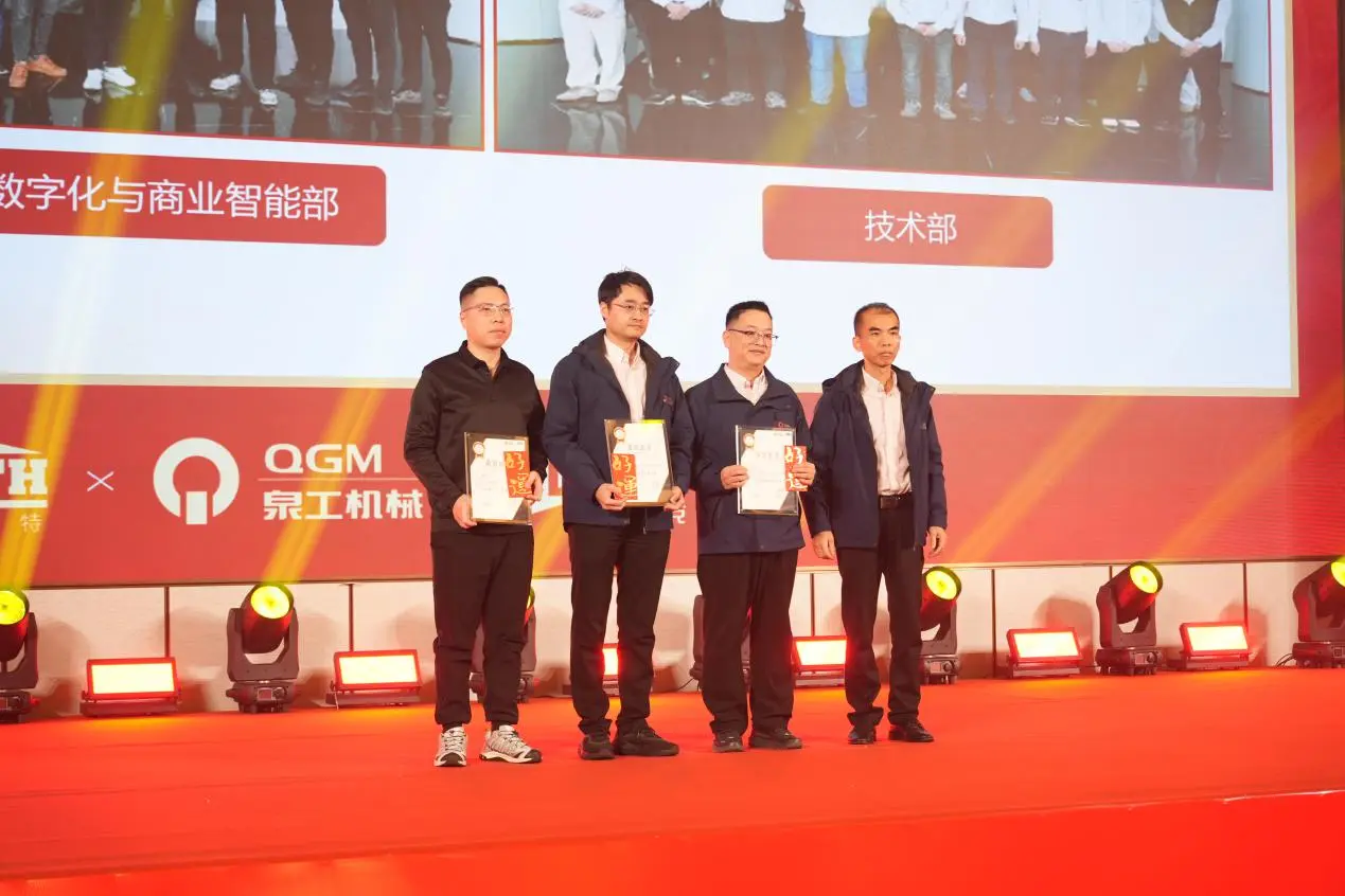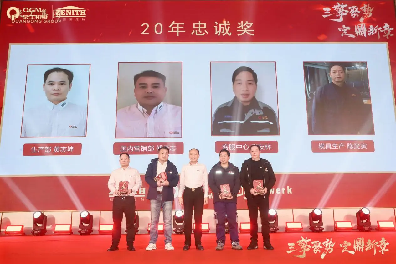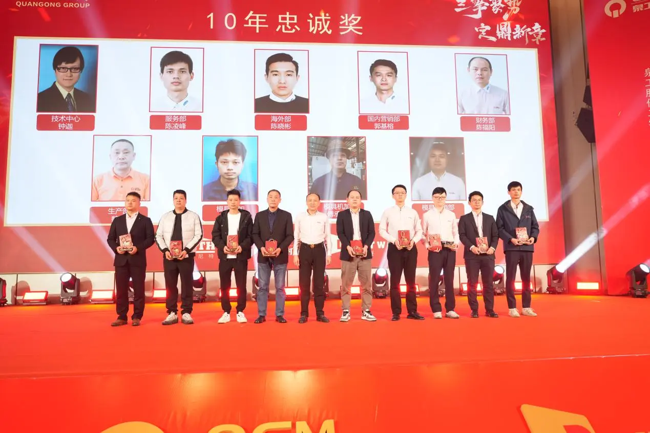 در طول نشست سالانه، مراسم اهدای جوایز بزرگ نیز برای جوایز وفاداری 10 ساله، 20 ساله و 30 ساله برگزار شد. گروهی از کارمندانی که دست در دست شرکت قدم برداشتهاند و با هم رشد کردهاند، به روی صحنه آمدند و به طور کامل پایه و اساس مستحکم شرکت ماشینآلات Quangong، توسعه پایدار و فرهنگ شرکتی پایدار آن را به نمایش گذاشتند.