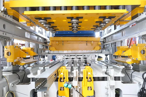 7دستگاه قفل سر را فشار دهید این مکانیسم قفل مکانیکی از بلوک های قفل کننده با استحکام بالا، سر پرس گوه ای شکل و سیلندرهای هیدرولیک دو اثر تشکیل شده است. در طول قالبگیری، استوانهها بلوکهای قفل را هدایت میکنند تا سر پرس را به صورت شعاعی ببندند و یک بنبست مکانیکی تشکیل دهند. سپس قالب تحت فشار ثابت رها میشود و به طور موثری بازگشت الاستیک و ریزحرکت را حذف میکند و از لبههای آجری تیز، سطوح صاف و نرخ کیفیت محصول بسیار بهبود مییابد.